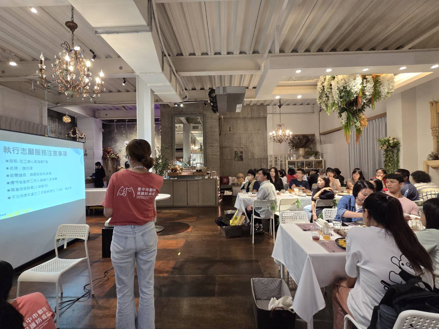 The Taichung Animal Protection Volunteer Team is full of enthusiasm and energy. This year (2025), the number of attending volunteers has increased significantly compared to last year, with a total of 92 volunteers participating in the service. This has enabled the various animal protection activities organized by the Health Inspection Office to proceed smoothly. Whether it is assisting with dog washing and walking the dog and adoption in the campus, or supporting large-scale events such as 66 Bazaar and Taichung Citizens' Picnic Day, the volunteers' presence always adds warmth and smiles to the scene. The Health Inspection Office thanks every volunteer partner and looks forward to continuing to work with everyone in the future to jointly create a better animal protection environment. Today, the annual volunteer end-of-term liaison meeting was held. In addition to letting the volunteer partners understand the operation of the volunteer team, they also reviewed the service achievements of the past year, including activities such as assisting with dog and cat adoption at the animal shelter on weekends, exercising and sunbathing with the dogs, basic grooming classes, and dog training courses. Through the process of service and learning, the volunteers have not only accumulated practical experience, but also gained rich physical, mental, and spiritual growth. During the meeting, the volunteers actively exchanged ideas and offered valuable suggestions, discussing how to make the team operate more efficiently and with greater cohesion. The atmosphere was warm and lively, fully demonstrating the enthusiasm and centripetal force of the animal protection volunteer team.