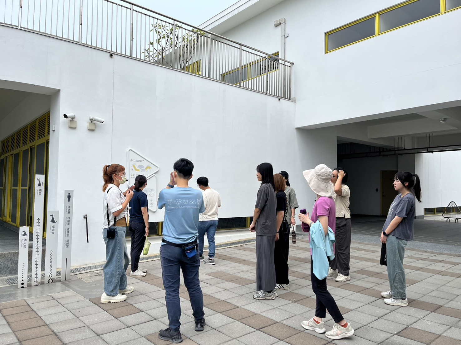 This workshop was led by psychologist Wu Si-ying from Encounter Animal-Assisted Intervention Counseling Center. Before the workshop began, participating social workers familiarized themselves with the animal shelter environment and the dogs' living spaces, cultivating empathy and respect for the shelter animals and building an emotional foundation for subsequent interactions. Following this, the social workers engaged in simple interactions with the dogs, such as walking together, gently petting them, or practicing basic commands. During these activities, they practiced "feeling the present moment" and became aware of their own inner emotions and reactions when facing life's vulnerabilities and difficulties. Next, participants extended their animal interaction experience by gently touching the shelter's cats, experiencing the healing inspiration that different species can offer. Finally, the instructor guided a group discussion and sharing session, helping participants organize their emotional experiences, learning outcomes, and self-discovery from the day. Through this structured, guided process, the feelings and insights gained at the animal shelter were transformed into energy for self-care and professional practice.